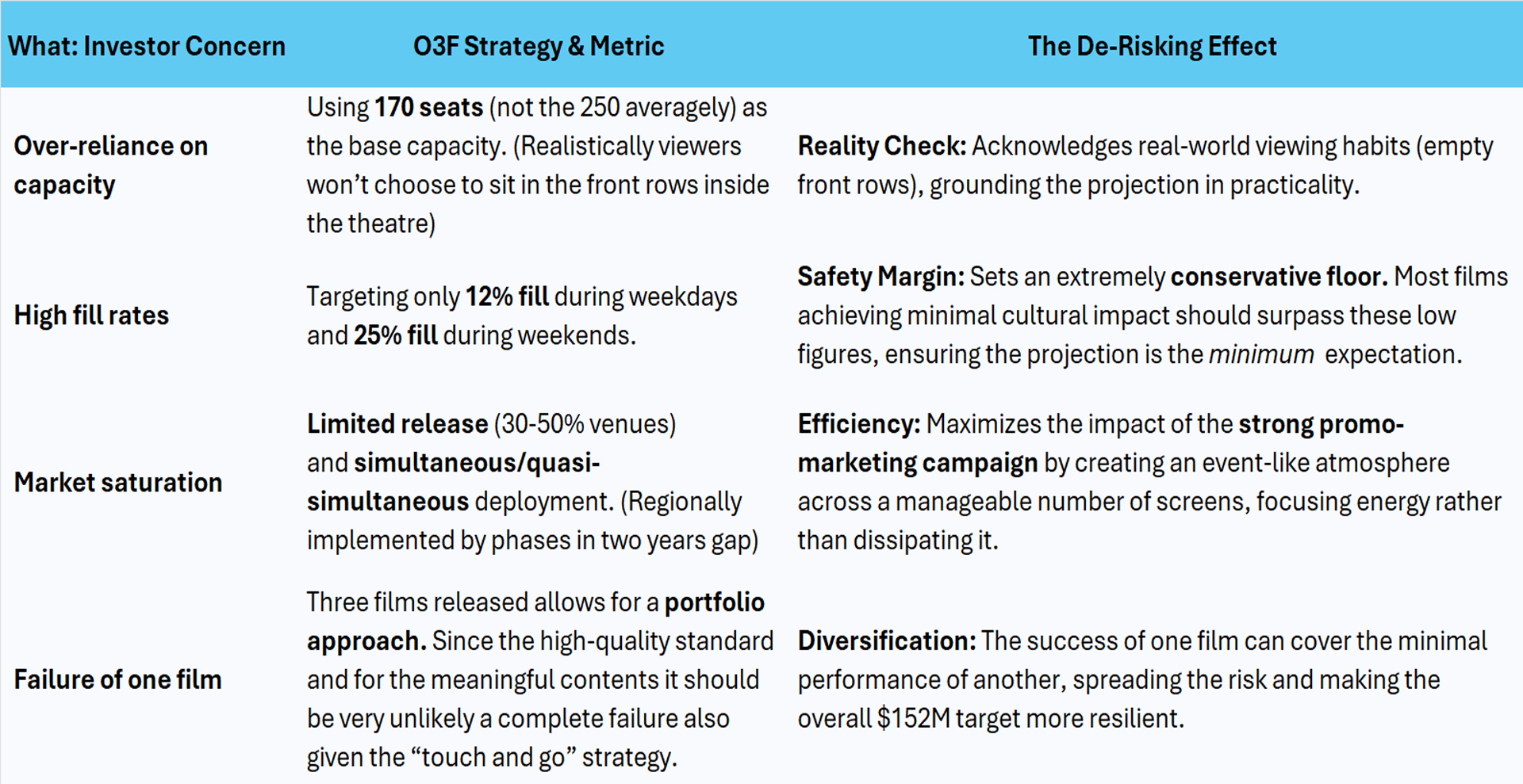 Although the risk exists that actual figures may fall below this minimum expectation, based on statistical audience response and the films’ genre